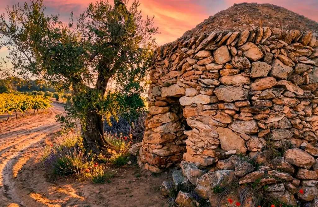 El verdadero corazón del Penedès. Visita bodegas centenarias, cata excelentes vinos y cavas locales, y piérdete paseando entre los campos de viñedos al atardecer.