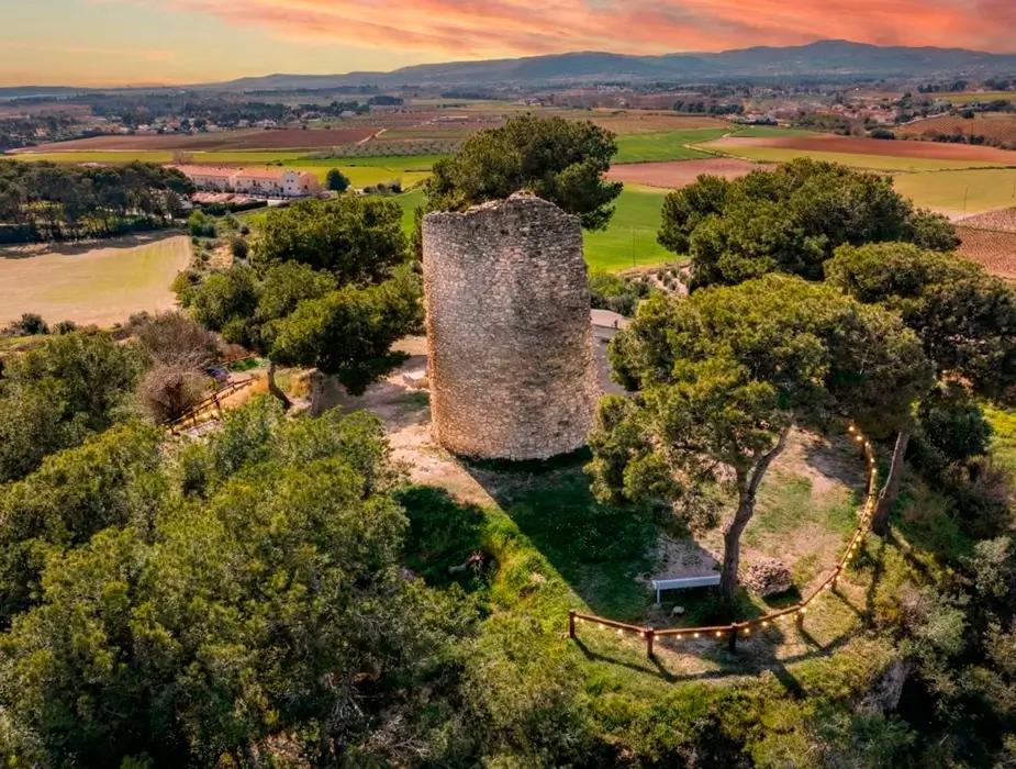 Imponente atalaya de vigilancia. Desde su cima disfrutarás de unas vistas panorámica inigualables, dominando el paisaje de viñedos del Penedès hasta llegar al mar.