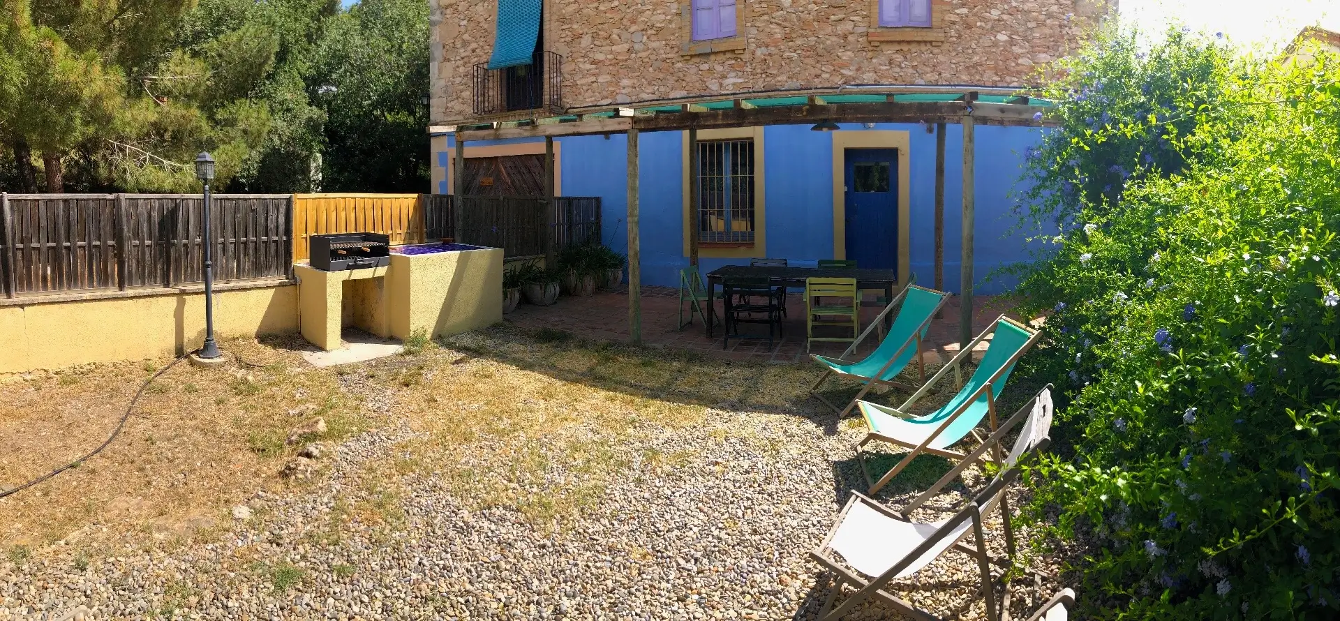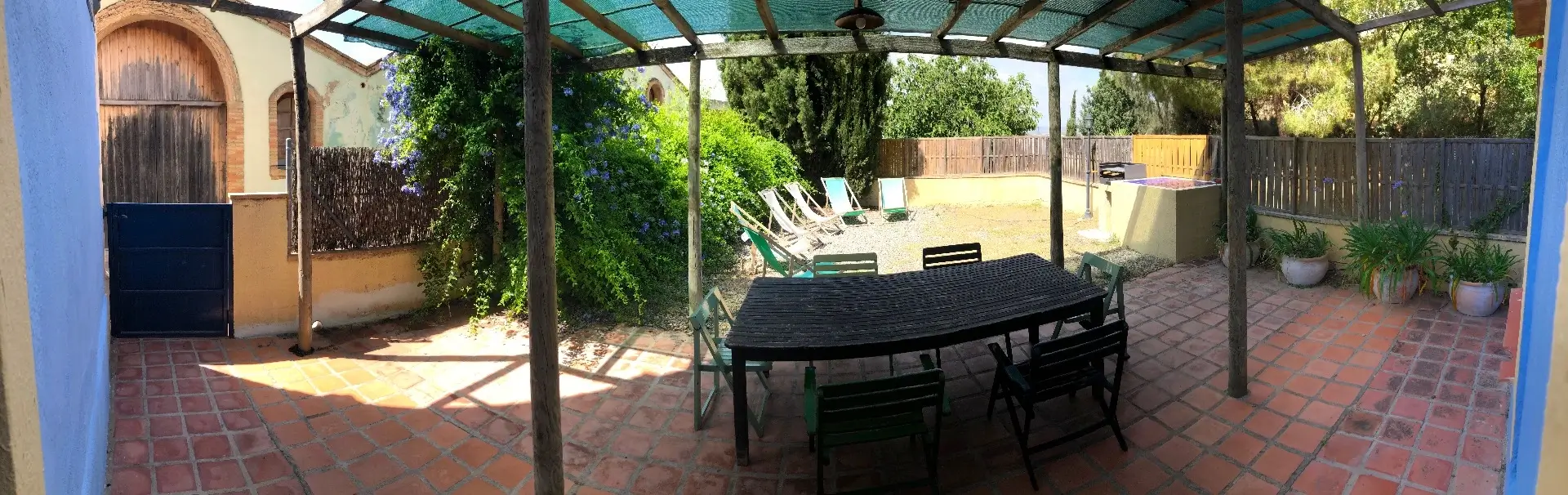 Dispone de jardín con barbacoa, porche con mesa, sillas y tumbonas.
